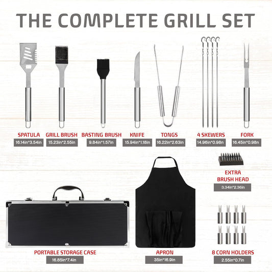 BBQ Grill Accessories Set, 21Pcs Stainless Steel Grill Tools Grilling Accessories with Aluminum Case