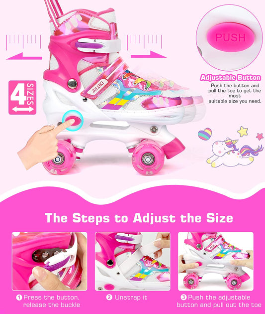 Roller Skates for Girls and Boys,4 Size Adjustable Kids Toddler Roller Skates with Light up Wheels for Toddlers Children Outdoor Indoor / Pink/L