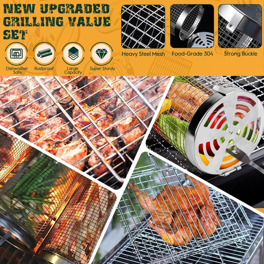 Grill Basket, 11pcs Rolling Grill Baskets For Outdoor Grill
